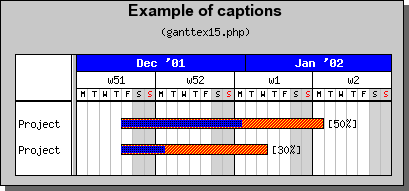 In Figure 158 the previous example is modified to indicate the progress of each activity by the default progress indicator. A solid bar. To make it clearer we have also modified the caption to reflect the displayed progress. (At the same time we also modified the scale headers just to illustrate some more formatting options).