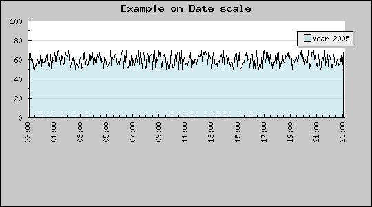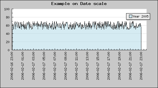 The first basic example below creates a data set that emulates a sample rate every S second and falls over a total period of two days. It is important to note that the input data on the X-axis must be a in the form of timestamp data, i.e. the number of seconds from the system epoch. In PHP the current timestamp value is returned by the function time().