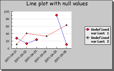 If the data value is null ("") or the special value "x" then the data point will not be plotted and will leave a gap in the line.
