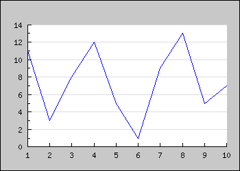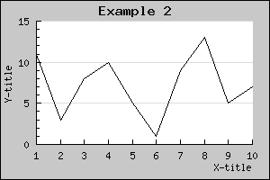 The first example draws a line graph consisting of 10 Y-values. In this first example we show the full code. In the following examples we will only show interesting piece of the code.